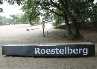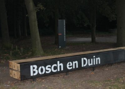 Voor Natuurmonumenten heeft BV koek de entree van de Roestelberg en Bosch en Duin gelegen in Nationaal Park de Loonse en Drunense duinen een nieuw aanzicht gegeven. Vervaardigd uit eiken balken en cortenstaal zijn er zogenaamde entreebalken gemaakt. De balken die tevens als bank dienen zijn voorzien van de naam van de desbetreffende ingang. Om de naam te accentueren is gebruik gemaakt van witte acrylplaat welke zich achter de uitgelaserde letters bevind. Voor de houtsoort is eiken gekozen om dat dit ook een gebieds eigen houtsoort is. Na verloop van tijd zal het cortenstaal een roestige uitstraling krijgen wat dan met het vergrijsde eiken een mooie combinatie vormt.