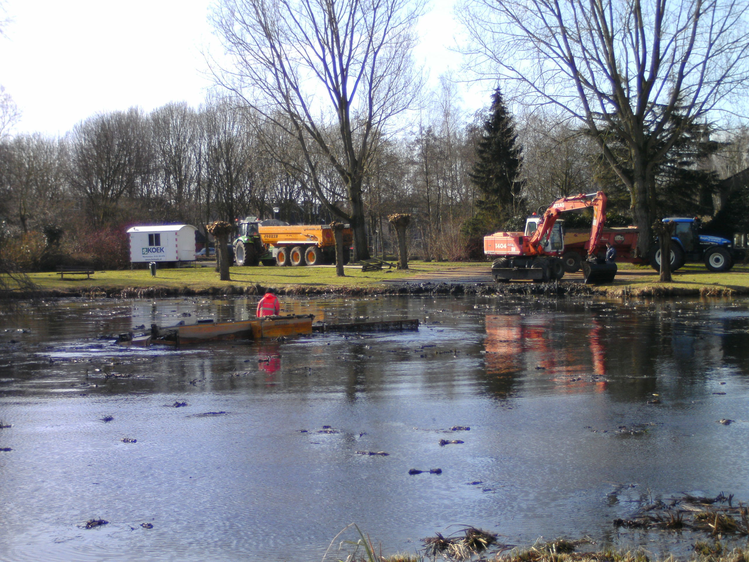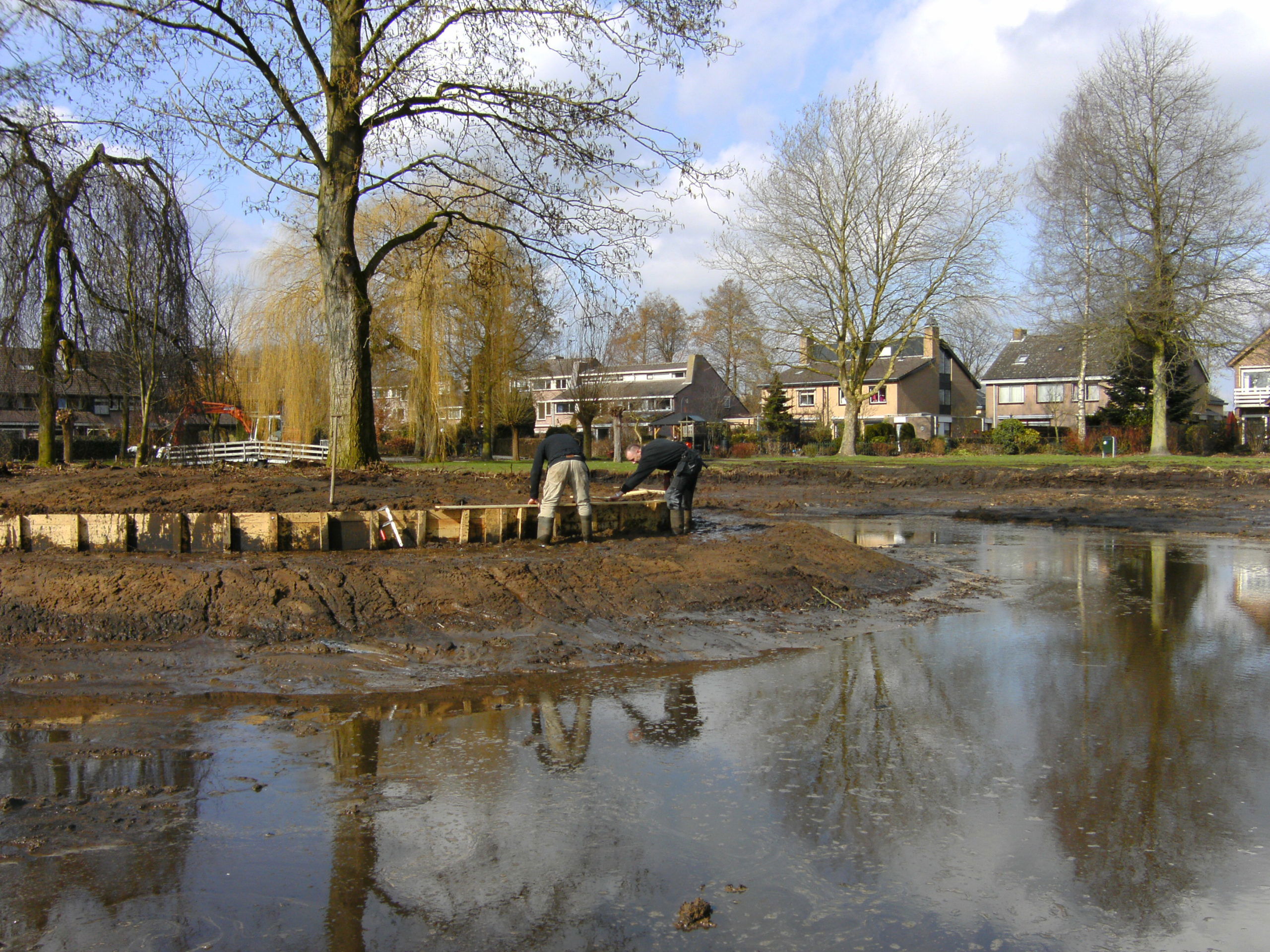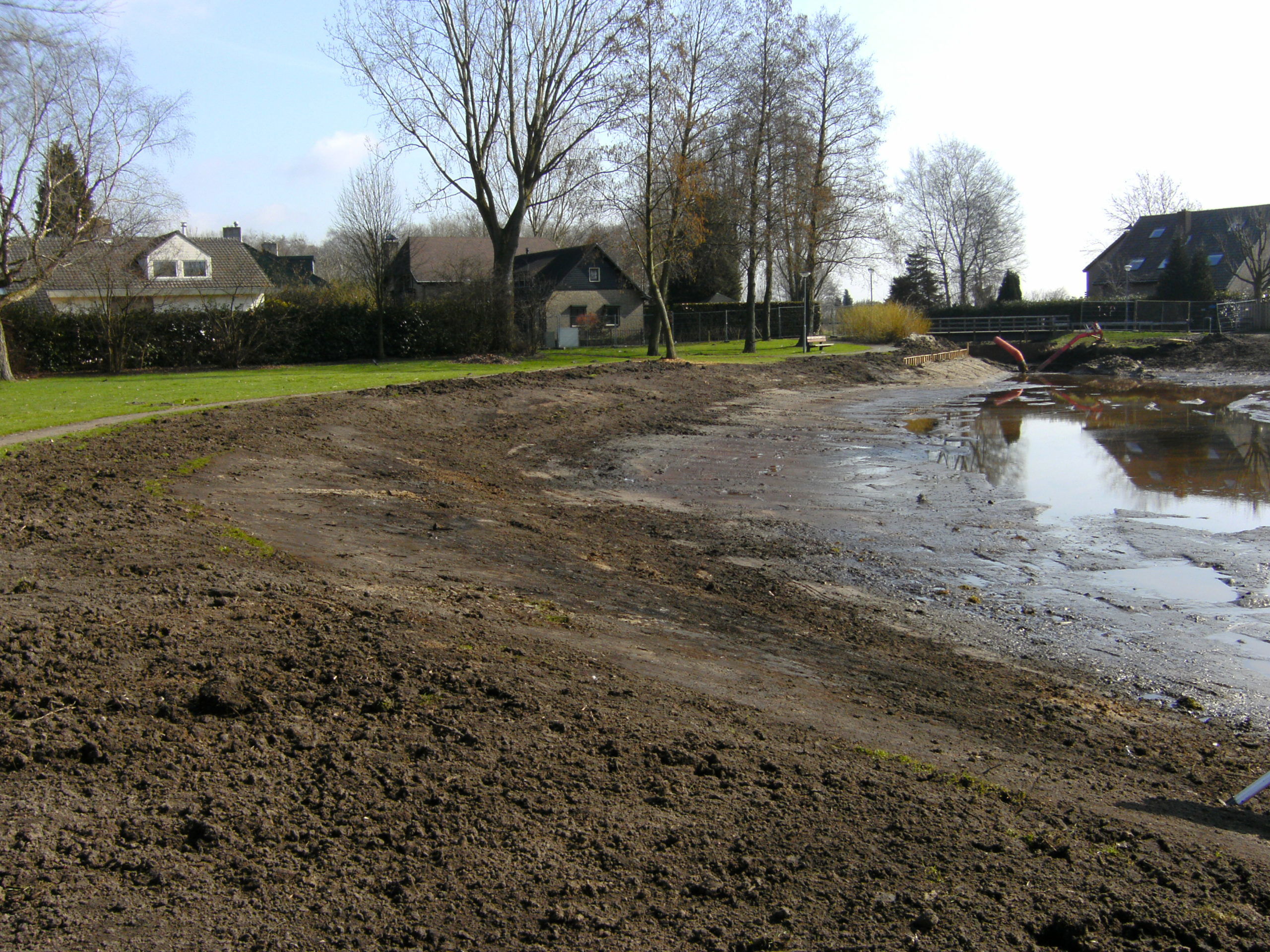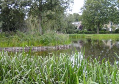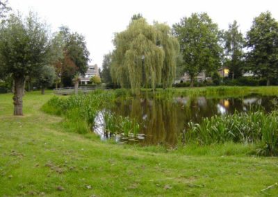 In opdracht van de Gemeente Drimmelen wordt de 30 jaar oude vijver in zijn oude glorie hersteld. Het werk bestaat uit het verwijderen van de dikke sliblaag, het ontgraven van de bodem, het vervangen van de beschoeiing en het maken van een natuur- en kindvriendelijke oever. Ook zal de vijver- en oeverbeplanting worden aangeplant wat samen met de nieuwe gazons weer tot een prachtige vijver zal leiden.