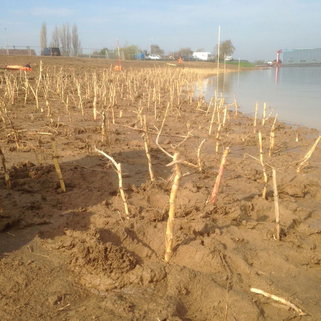 Planten van rietstekken locatie Zelling Schanspolder