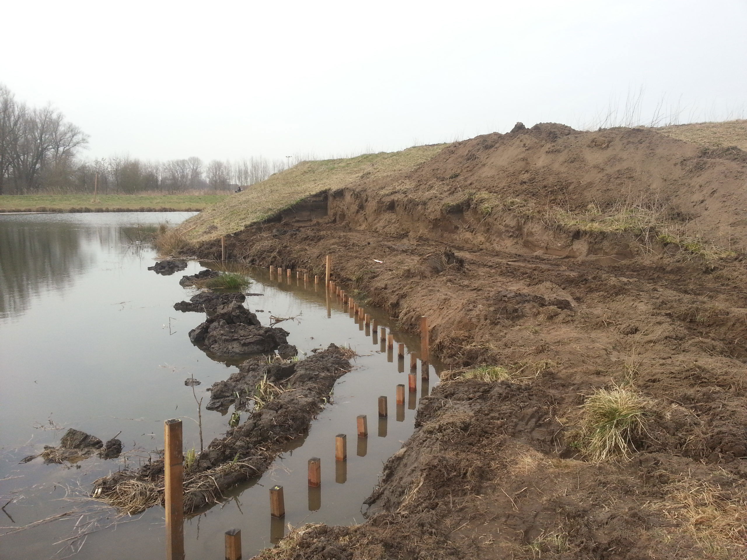 Het herstelwerk bestaat uit o.a. het verankeren van de oeverlijn en het zetten van beschoeiing, waarna verzakken niet meer mogelijk is. De oorspronkelijke contouren en hoogtes worden via een gps bepaling hersteld, waarbij ook de nodige verdwenen grond is aangevuld. De oppervlaktes zijn ingezaaid en de toegangsweg voorzien van een landelijke hekwerk en toegangspoort.